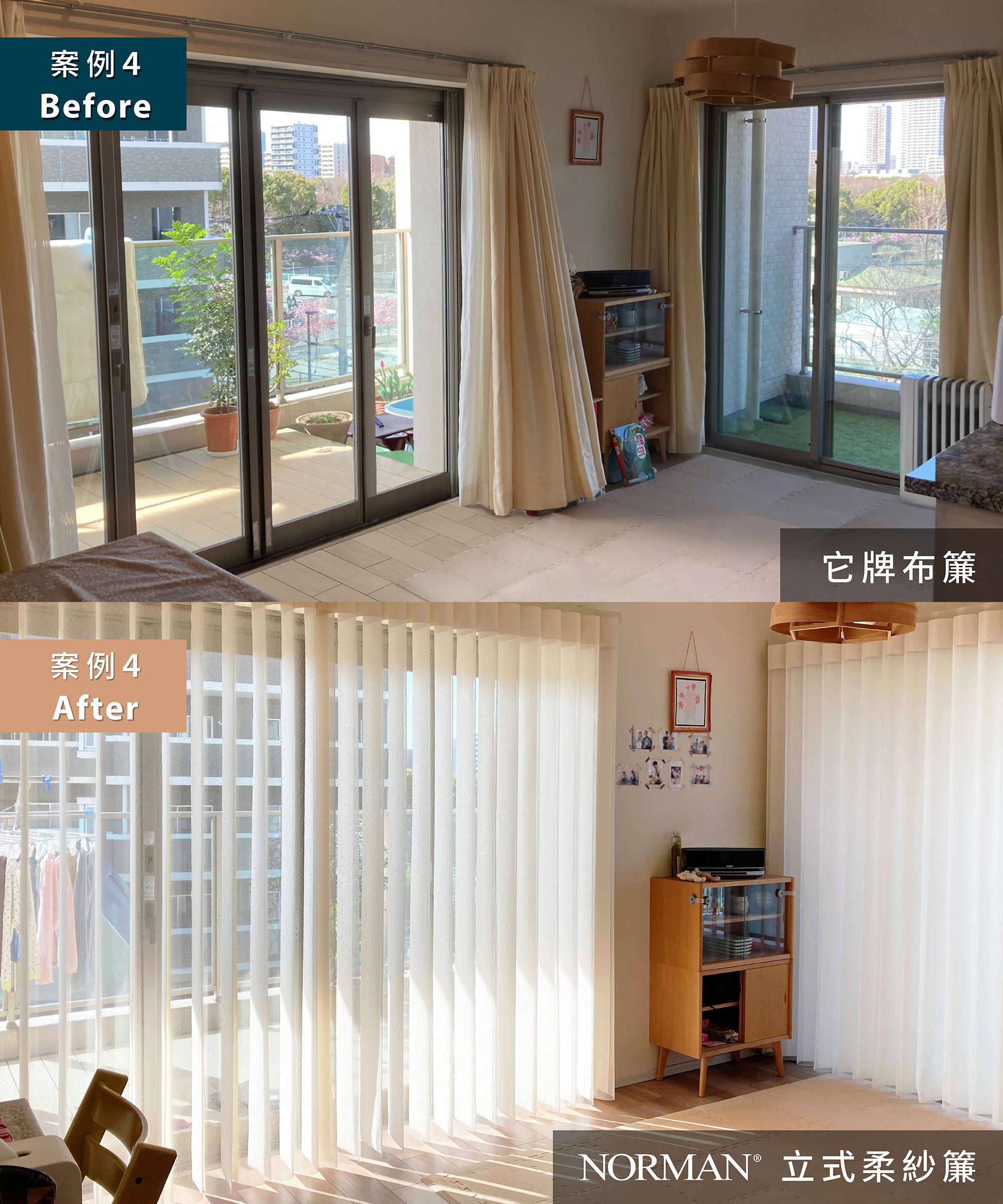 “產品品質、施工都很不錯,是我們配合的室內設計師推薦我們使用的。最後選用仿木的百葉窗,價格可以接受而且品質很不賴,業務在介紹優缺點的時候也很盡責,都會把優缺點說出來,不會在那邊為了賣而賣”